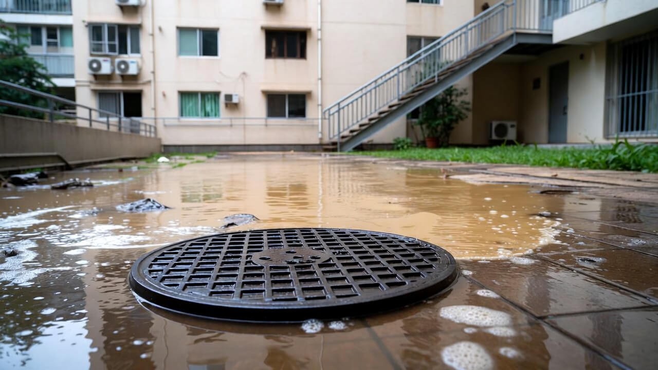 Aknákból kiöntő szennyvíz jelzi az udvari rész hibáját – mi javasoljuk, ellenőriztesse a közös képviselővel.